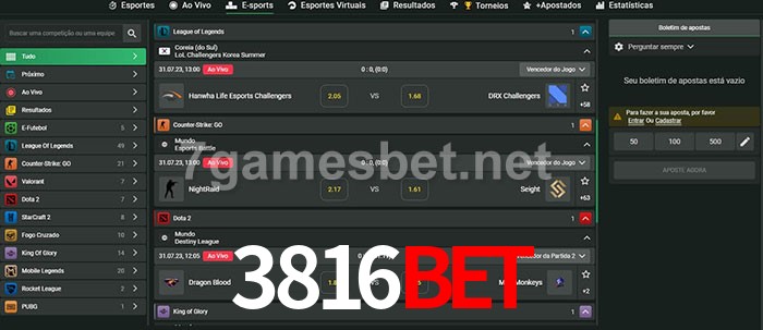 O 3816bet oferece uma grande seleção de opções de apostas em e-sports com probabilidades competitivas